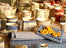 Wir helfen dabei mit Blechdosen, Geschirr, Geschirrtüchern, Gläsern, Weingläsern, Wassergläsern, Melamingeschirr, Papierservietten, Tischdecken, gequilteten Tischsets, Wachstuch am Meter und vielem mehr.